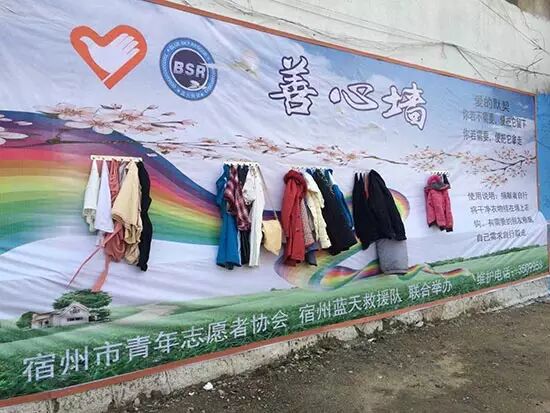 春节前,市青年志愿者协会和宿州红十字蓝天救援队联合设置了善心墙,志愿者将募捐而来的冬衣挂在宿城环城北路水利局大门西侧20米处和西昌北路眼病防治所对面的墙上,当天就有一些衣服被取走,也有市民前往捐赠。据介绍,这两面“善心墙”由居住在附近的志愿者3至4人为一组,负责下雨天的时候把衣服收起防止淋湿,天晴的时候再挂上去。志愿者表示,日后将考虑给“善心墙”安装防雨装置,让其发挥更大的作用。考虑到衣物的实用性,不建议爱心人士捐赠贴身的衣服,衬衫、毛衣、外套等都可以捐赠。