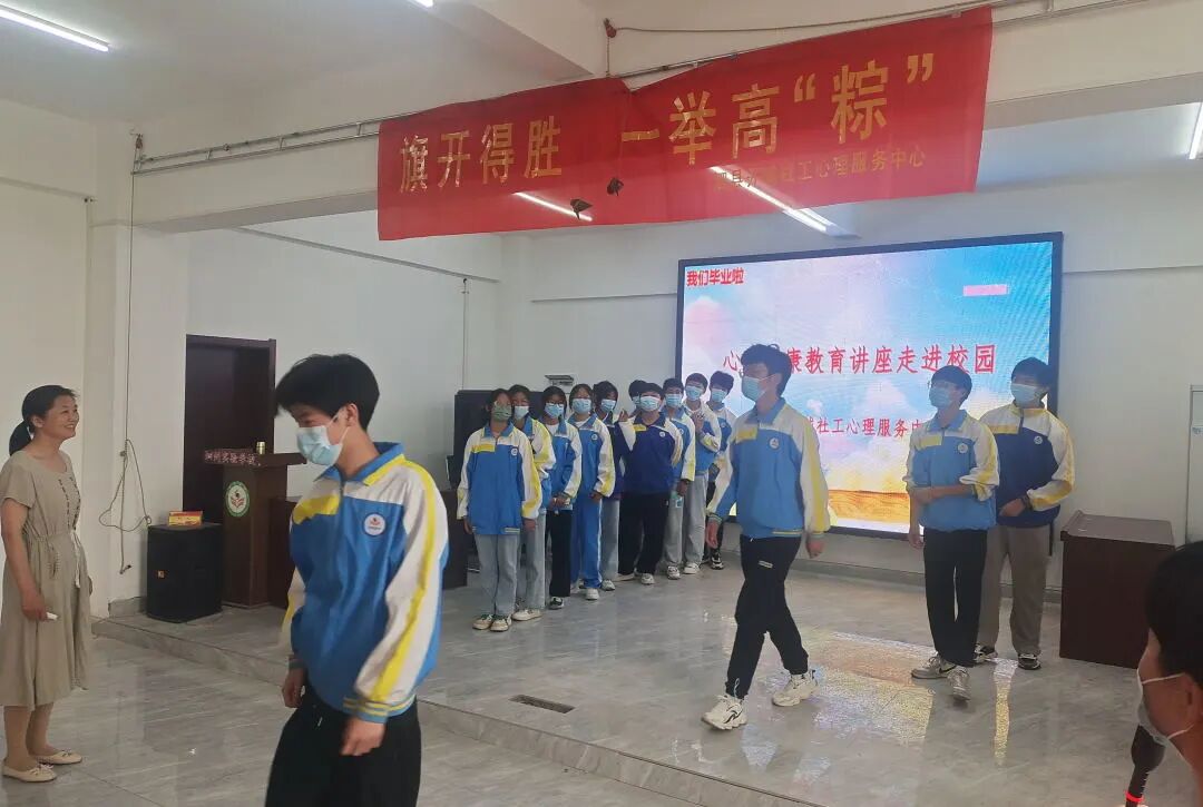 2022年5月28日,泗县泗州实验学校、开诚社工心理服务中心和四里桥社区联合开展“社区青春行动”之中考减压心理健康教育课堂活动。